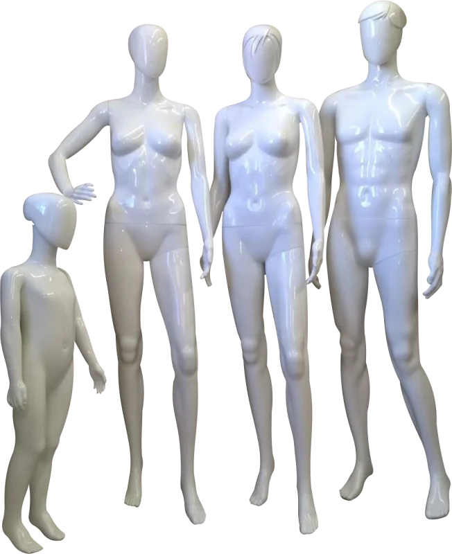 O manequim branco brilhante é amplamente utilizado no comércio para a exposição de roupas, sendo de extrema importância que estes modelos de manequins sejam fabricados visando a durabilidade dos mesmos, pois devido ao seu uso ser nas atividades de exposição, o manequim branco brilhante deve possuir alta resistência a impactos.