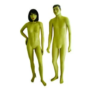 Confeccionado a partir de resinas plásticas, o manequim de plástico corpo inteiro pode ser encontrado nas cores bege, preto ou branco, fabricado com material na própria cor do manequim, sem a necessidade de pintura. Isto facilita muito a limpeza do manequim de plástico corpo inteiro, além de apresetnar alta durabilidade, pois evita que a superfície apresente riscos e rachaduras devido a quedas e batidas, o que acontece com frequencia em manequins de fibra de vidro.